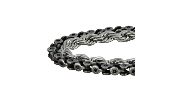 De stalen motorkettingarmband Lonan voor heren van Goyatè is een elegant herenaccessoire met een dubbele ketting, gevlochten en gepolijst.