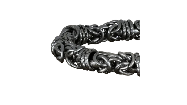 De roestvrijstalen kettingarmband voor heren met zijn speciale weefpatroon herinnert aan het harnas van oude inheemse krijgers.